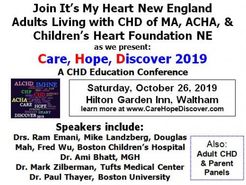 Join us Saturday, October 26, 2019 for our 3rd CHD Education Conference - Care, Hope, Discover 2019